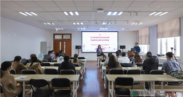 3月18日上午,材料学院召开2020年度党支部书记述职评议考核会,5名教工党支部书记和12名学生党支部书记进行现场述职。会议由学院相关负责人主持,学院党委委员代表、组织员、关工委教师和学生党员代表参会。