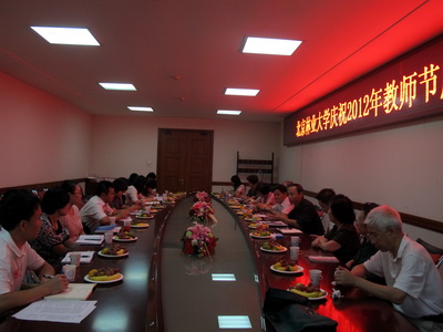 在9月10日教师节之际,学校组织召开了老教师代表、青年教师代表庆祝教师节座谈会,共同分享教师节的喜悦。校长宋维明、校党委副书记全海、副校长骆有庆向全校教师致以节日的问候!副校长骆有庆与参会教师座谈。