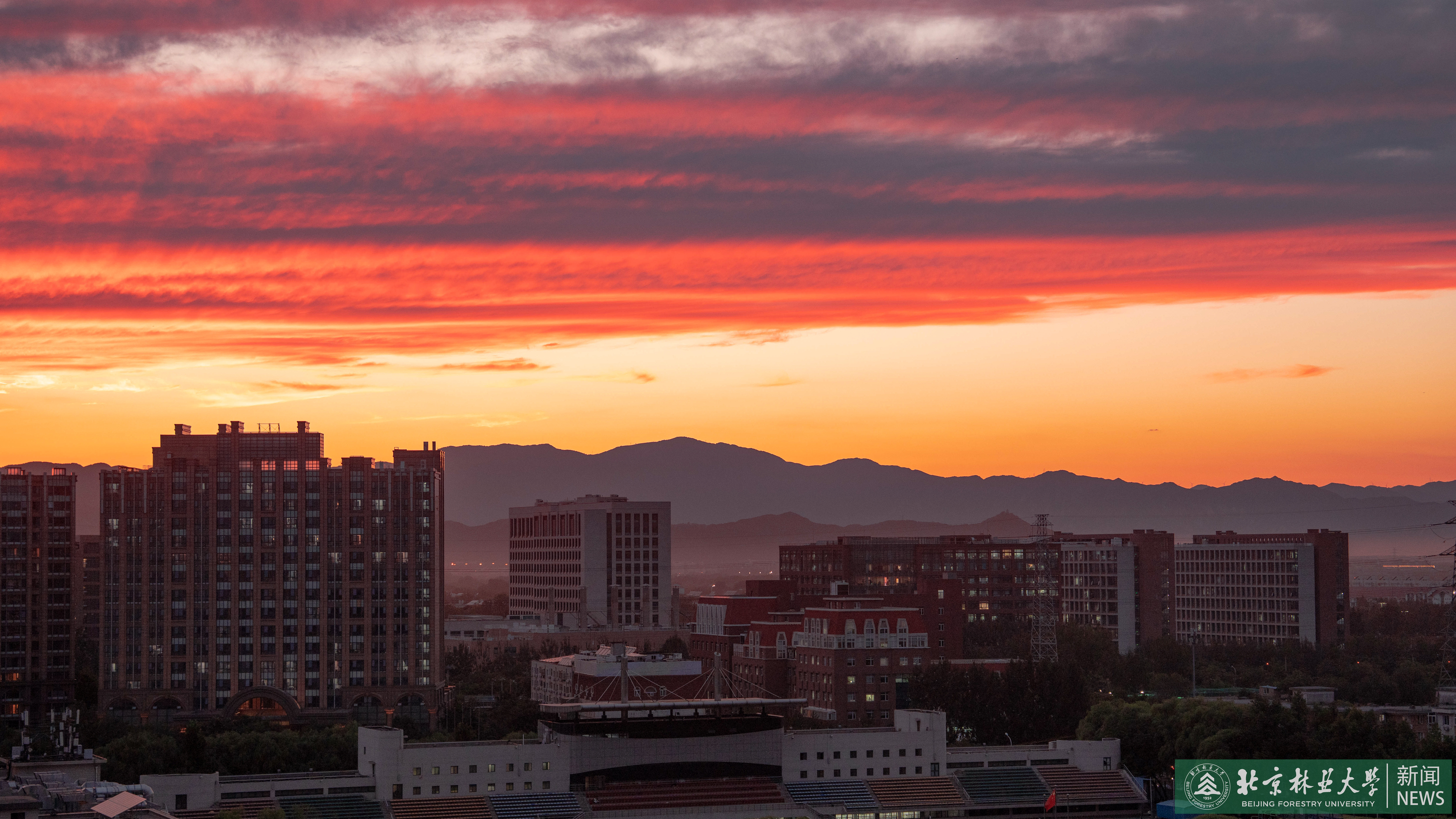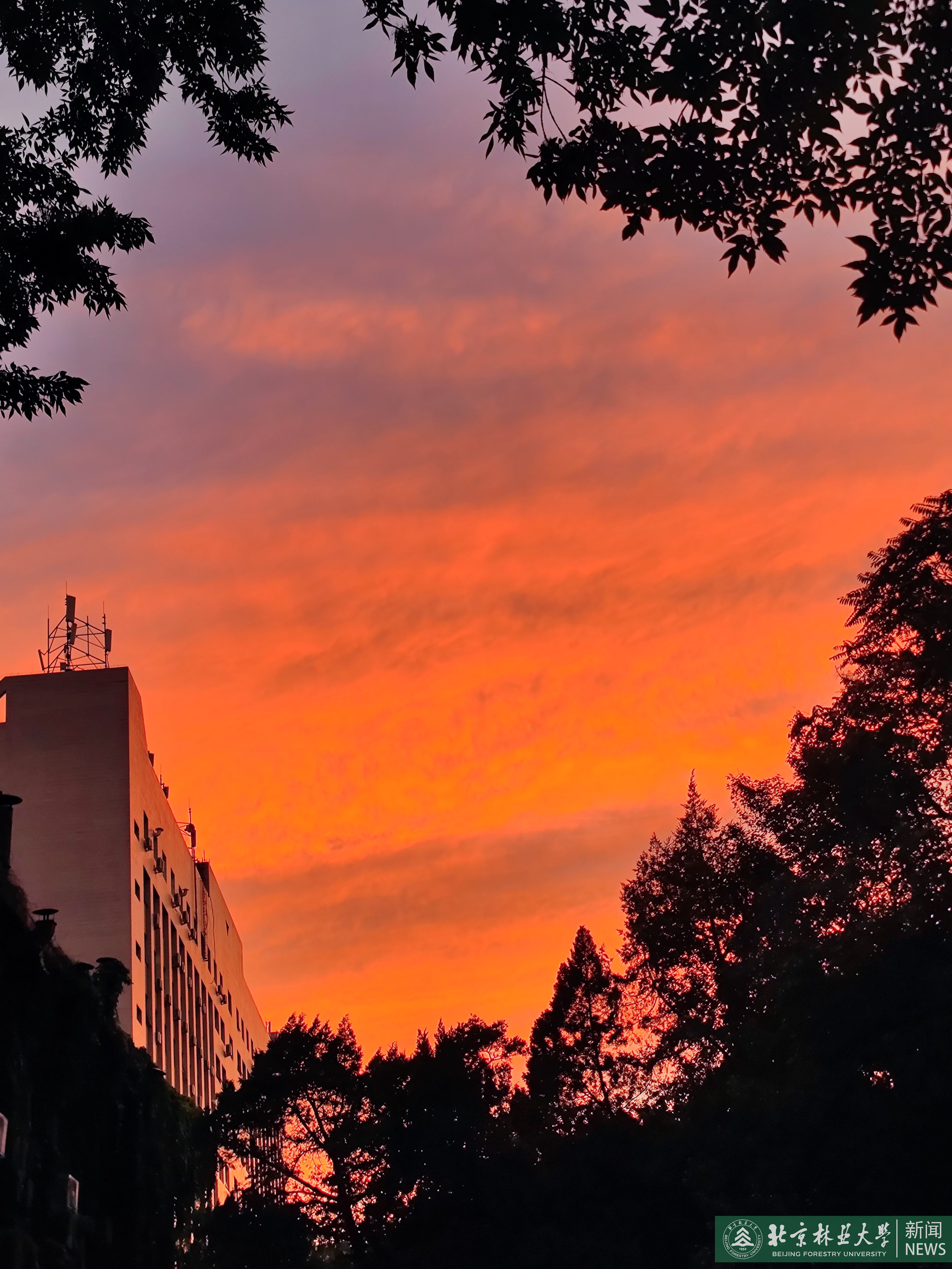 日落清风起,云山衬晚霞。耀眼的金色光芒洒满天际,将校园里的一切渲染地格外美丽。夕阳其实不是一瞬的光景,只要我们用心享受,便能永留心间。