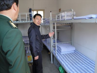 慰问团随后前往部队宿舍,看望了参加训练的部队的官兵和基地后勤工作人员,并为他们送去了慰问品。在视察了承训部队的食宿等生活条件后,姜校长强调一定要为承训部队提供良好的生活保障,表达了我校对承训部队的关怀。