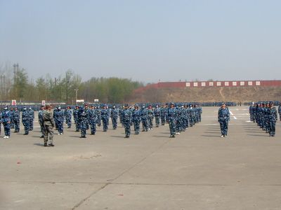 据悉,2009级学生军训汇报表演将于4月26日在大兴军训基地举行,参训同学正以饱满的热情的良好的精神状态投身到训练当中,用实际行动来检验自己10天军训的成果。