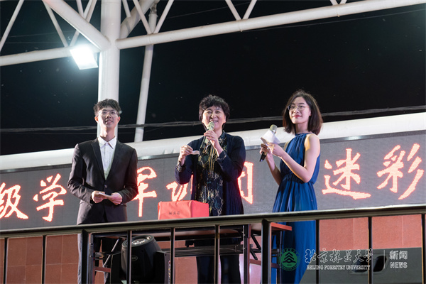 孙信丽走上舞台接受主持人的现场采访。她充分肯定同学们的军训效果,并对同学们提出了殷切希望。她希望同学们严守纪律听指挥,确保人身安全;希望同学们再接再厉,继续发扬团结友爱、坚忍不拔的精神,以良好的状态向学校党委和老师汇报。她强调,当代青年学生是第实现二个百年目标的主力军,她要求同学们要将军训中学习到的宝贵精神延伸到日后的学习和科研中,不断在科技创新的道路上贡献北林智慧和北林力量。