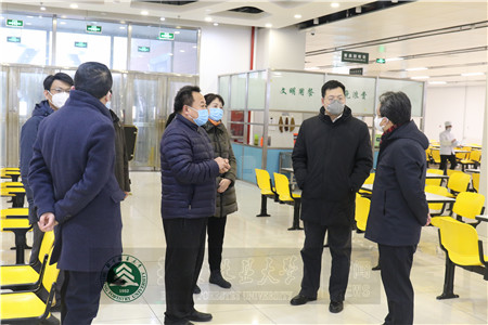 2月2日,王洪元、王涛实地督查马克思主义学院、人文学院、外语学院、体育教学部、信息中心、国资处、宣传部、人事处、科技处、总务处、发规处、国际处、学生心理健康教育中心等单位疫情防控整体工作情况和南二门安保情况,对主要负责人在岗工作、落实延期开学教育教学任务、强化校园安全管控、加强心理健康辅导等工作提出要求。