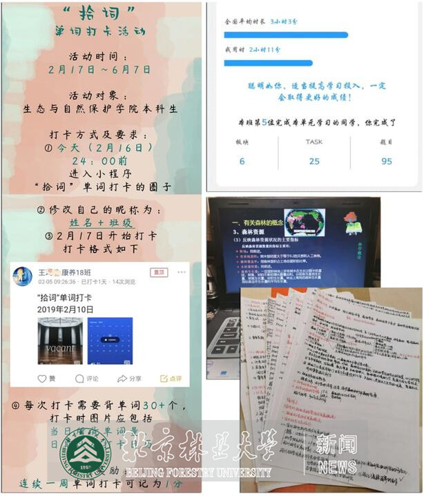 学院通过一系列线上教学、线上学习机制,逐步落实“停课不停教、停课不停学”的总体要求。基层支部积极开展健康学习系列活动,鼓励大家养成在家不停学的习惯,78人次参加“拾词”英语单词打卡,各班级成员课后主动整理和分享专业课程音视频、电子笔记、优秀作业、学习平台等20余项资源,同学间形成学有网络空间、共激共进的良好氛围。同时,学院教学秘书和辅导员入驻12门在线课程交流群,线上教学期间全程在线,协助授课教师维护课堂秩序、为学生答疑解惑。