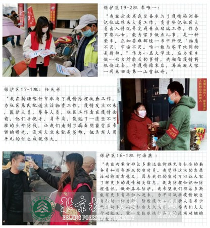 青年团员敢担当,抗“疫”出战我先行。疫情爆发后,保护学院14位学子积极投身于社区、农村疫情防控一线,在冰雪之中为保障家乡人的平安健康而发光发热——他们有的驻守社区出入点进行疫情检测登记,有的穿梭在街道上向发放抗疫宣传资料,有的奔走社区为居民配送生活物资……全国奋战期间,青年学子有责任,负使命,用“逆行”之坚守与奉献为寒冬增温。