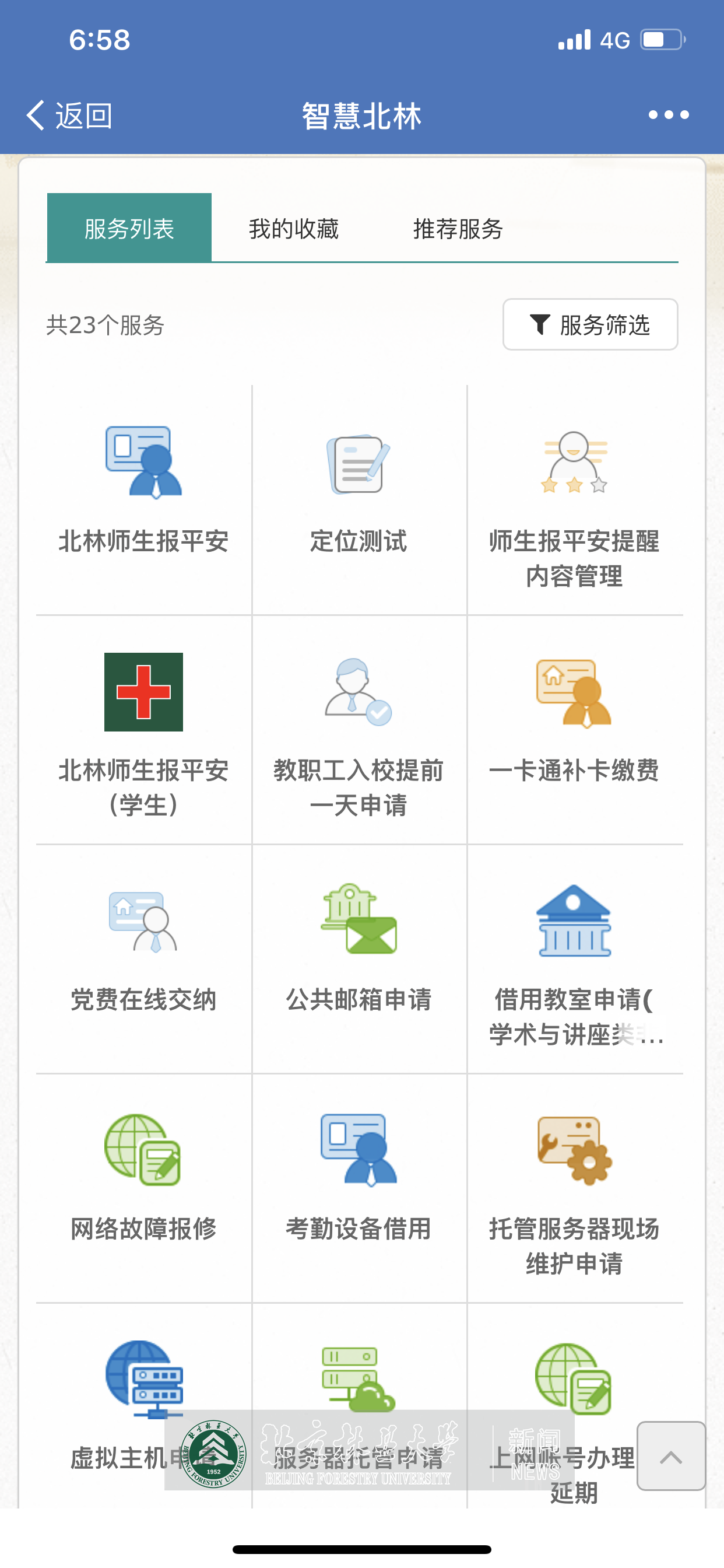 流畅的线上沟通办事是学校日常事务顺畅进行的重要保障。信息中心通过北京林业大学微服务,在微信平台上线“我要办事”等20项应用服务。其中,“北林师生报平安”、“教职工入校提前一天申请”、“疫情防控爱心捐款”等服务,有效支撑了疫情期间校园管理与服务需求。