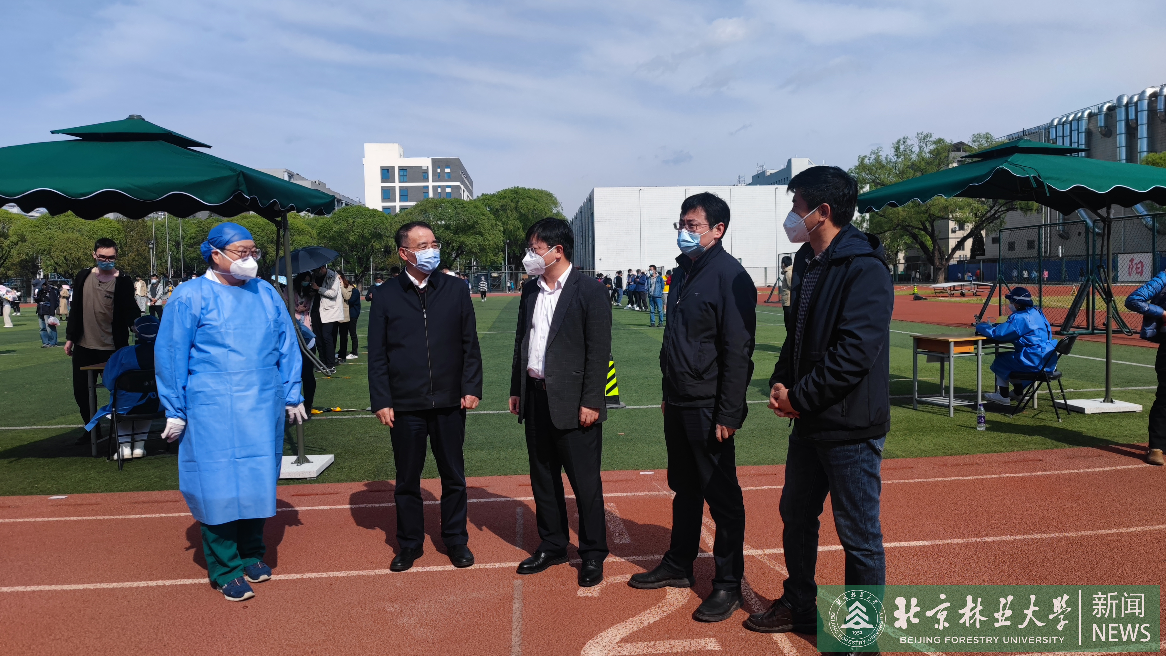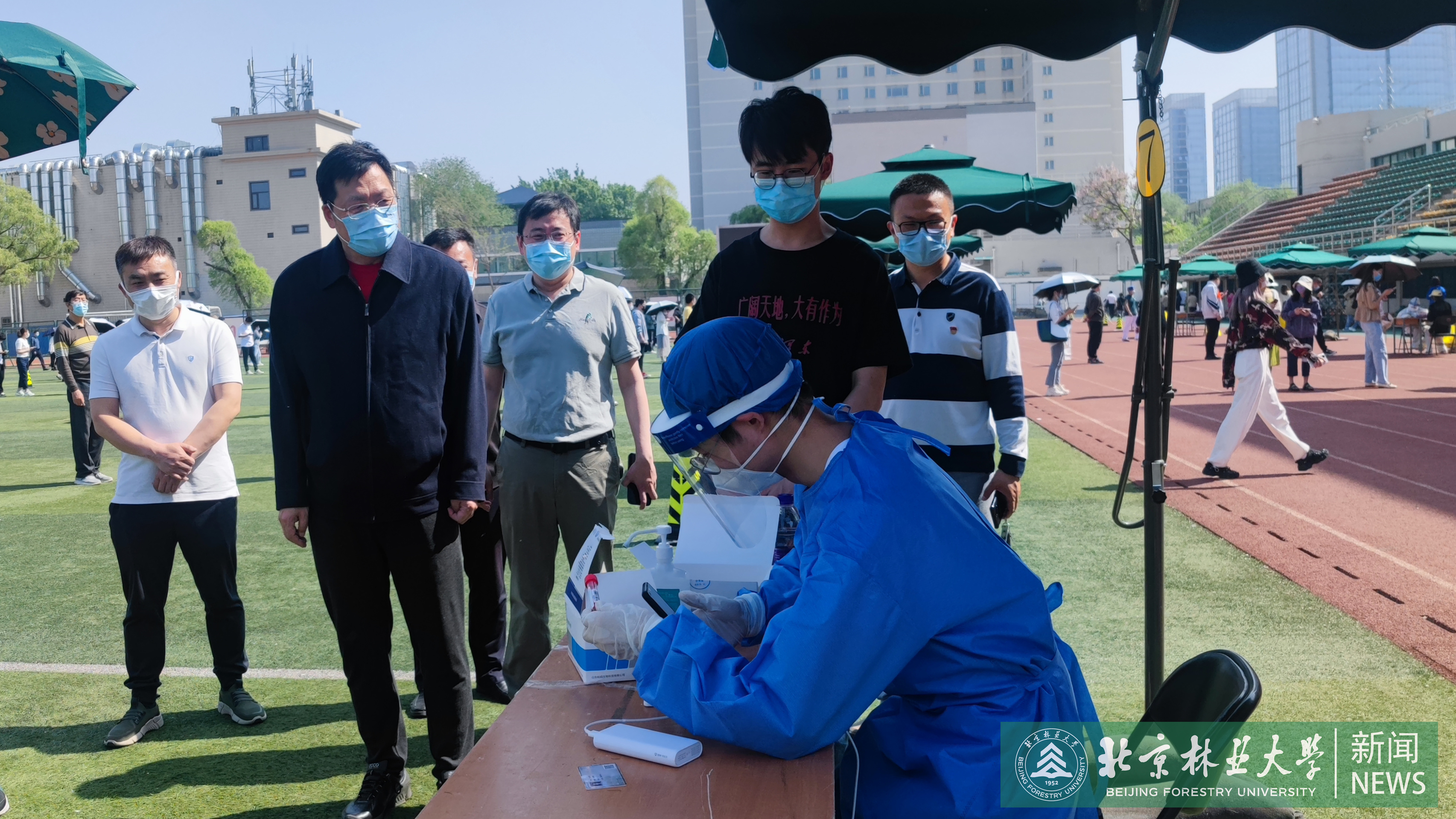 4月26日至5月5日,我校按照北京市统一部署要求,在校内组织完成了7次全校师生核酸检测。校党委高度重视核酸检测组织工作,校党委书记王洪元,校长安黎哲,校党委副书记谢学文,副校长邹国辉、张志强等校领导前往核酸检测点,对医护人员和党员教职工志愿者进行慰问。
