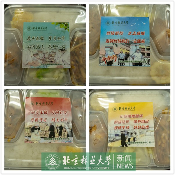 餐饮服务中心未雨绸缪,在此波疫情发生前,提前购置55个保温箱,并在21日下午紧急添置146个保温箱,为送餐工作提供保障。餐食放置保温箱内保温,用电瓶车配送,加快送餐速度,保证封控楼宇师生吃上热饭热菜。餐饮服务中心还紧急联系厂家定制宣传贴画,贴在餐盒外部,用暖心的提示、鼓励的语言、温馨的祝福给封控楼宇师生送去温暖。
