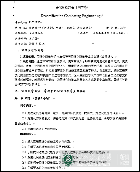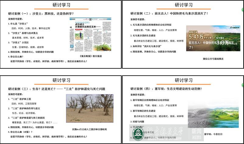 课程思政是“荒漠化防治工程学”教学团队始终坚持的教学理念。一直以来,在北京市、学校各级教改项目的支持下,教学团队编制课程思政教学大纲,撰写课程思政教学案例,开展课程思政教学实践,不断完善课程思政教育教学模式,收获了明显的教学效果。高广磊老师说“虽然疫情突如其来,对国家社会都是一场考验,作为大学教师,我们可以利用疫情引导学生放眼看世界。”“地球—病毒—人类”之间的关系不就如同“地球—沙漠—人类”吗?飞沫传播、气溶胶等这些公众所热切关注的问题与风沙运动、沙尘暴等课程知识存在着密切的联系。教师要引领学生思考,锤炼学生认知世界的思维。多难兴邦,逆境中我们更能够清晰、准确的理解人与自然的关系。知道了,理解了,自然也就没有谣言,更没有慌乱,这是马克思主义的认识论和自然观。