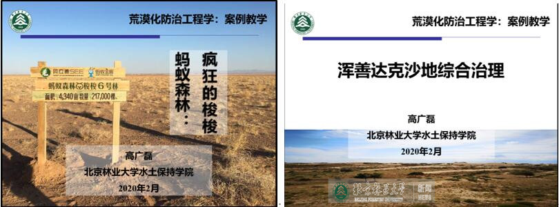 线上教学是保障“新冠”肺炎疫情期间教学工作的基本途径。高广磊老师开玩笑说“没想到全民主播的时代来的这么快。这是我第一次接触线上教学,但我们和视频课程已经是老朋友了。”的确如此,“荒漠化防治工程学”教学团队早在2013年起就开始接触视频课程。2019年,高广磊老师主持北京林业大学精品在线开放课程建设项目“荒漠化防治工程学”,视频课程经验不断积累。此次疫情突袭,长期积攒的“荒漠化防治工程学”精品在线开放课程相关资料将为线上教学提供坚实保障。
