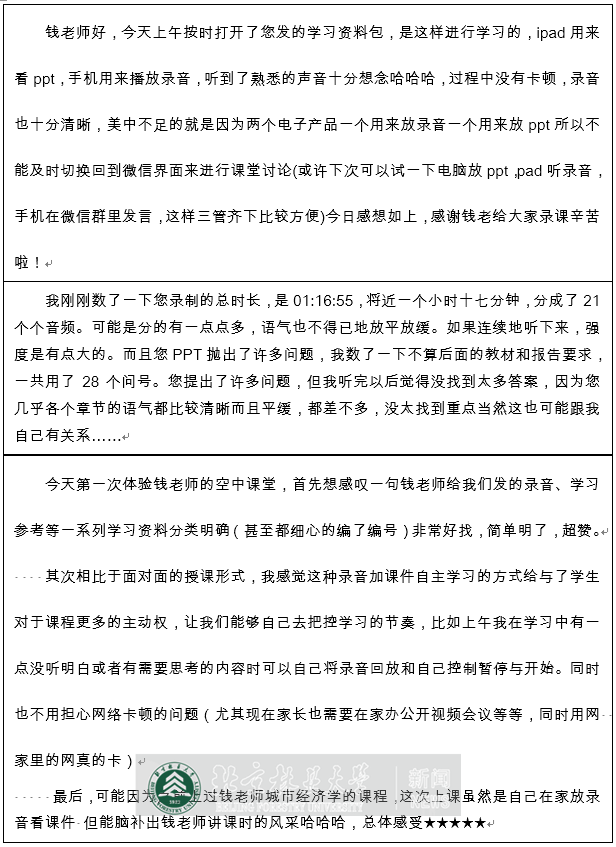 随后,按照学校和学院的要求,我又开始准备春季学期的《城乡社会调查综合研究》这门必修课。这门课理论与实践相结合,授课方式较为复杂,准备起来头绪甚多。在我倍感困惑的时候,我与位于疫情风暴中心武汉的华中科技大学同僚们连线,看到他们在那样的困难中还在紧张备课,这让我倍受感动!这期间每天来自学校和学院的各种推送也源源不断,各种网上开放学术信息和网络授课操作指南纷至沓来,还接受了几名研究生的“远程技术指导”,并且虚心的向几位中小学网课教师讨教,多方指导,终于让我信心满满的进入了新的角色!
