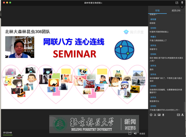 日前,一场特殊的组会,在林学院骆有庆教授的主持、陶静副教授和任利利高级实验员的协助下,于腾讯课堂顺利开展。这场组会是我校森林保护学科骆有庆教授研究团队一次特别的线上SEMINAR,网联八方云聚首、连心连线话科研。