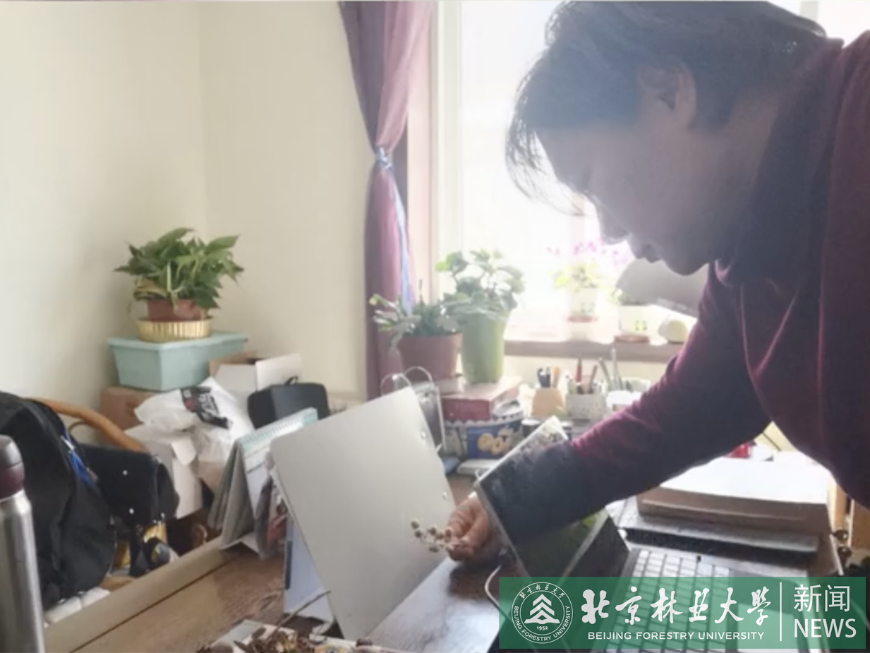 林学院孙永江教师在实践基地录制线上实习教学素材,确保线上实习正常开展。居家教学期间,他通过和家人分享备课和授课的感受,讲学生在家参与实习的教学小故事,使得居家教学成为增进家人相互了解的机会。教师、学生、家人的相互理解与支持,让居家教学生活温馨和充实。