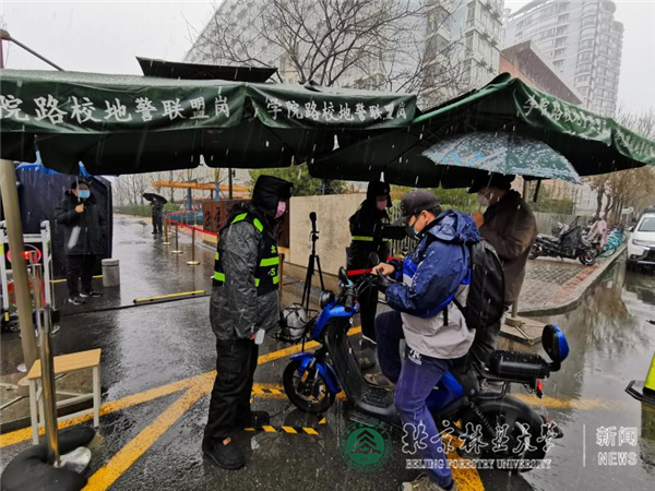 保卫处全体党员坚决落实学校党委的决策部署,充分发挥先锋模范作用,领导班子和党员干部全员到岗,不顾冰雪大风严寒,到门岗一线参与执勤,宣传解释学校方案,随时处理相关问题,全力做好疫情防控工作。
