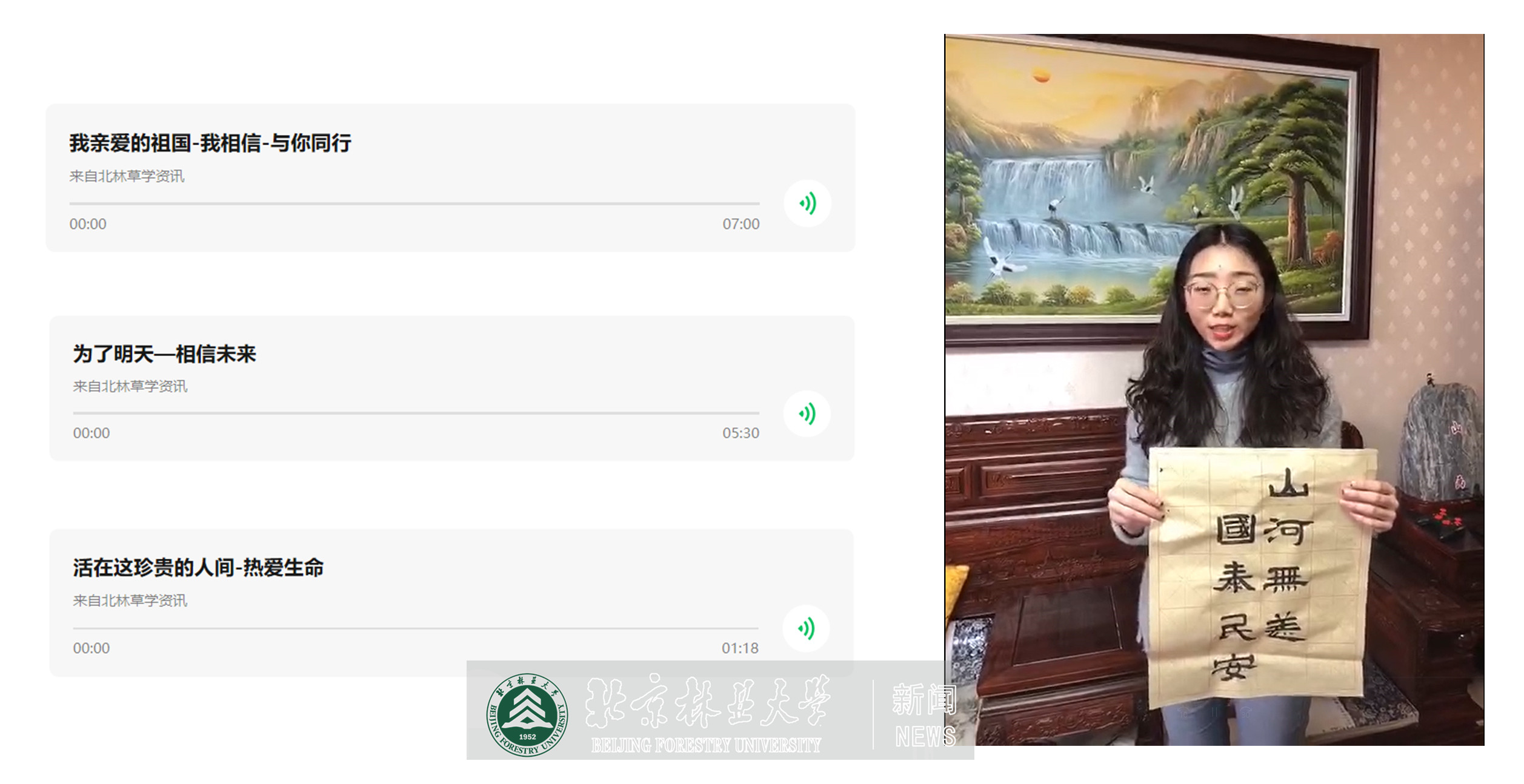 除此之外,党支部7名党员以党小组的形式,选取名家名篇开展“云朗颂”,支部党员虽然没有精良的录音设备,也没有播音员标准的语调,但是他们用最朴实的方式演绎出《祖国啊亲爱的祖国》《我相信》《相信未来》《为了明天》等经典文章。入党积极分子胡乃文用手写“山河无恙,国泰民安”并录制祝福视频的方式,表达自己对武汉人民、湖北人民的支持。