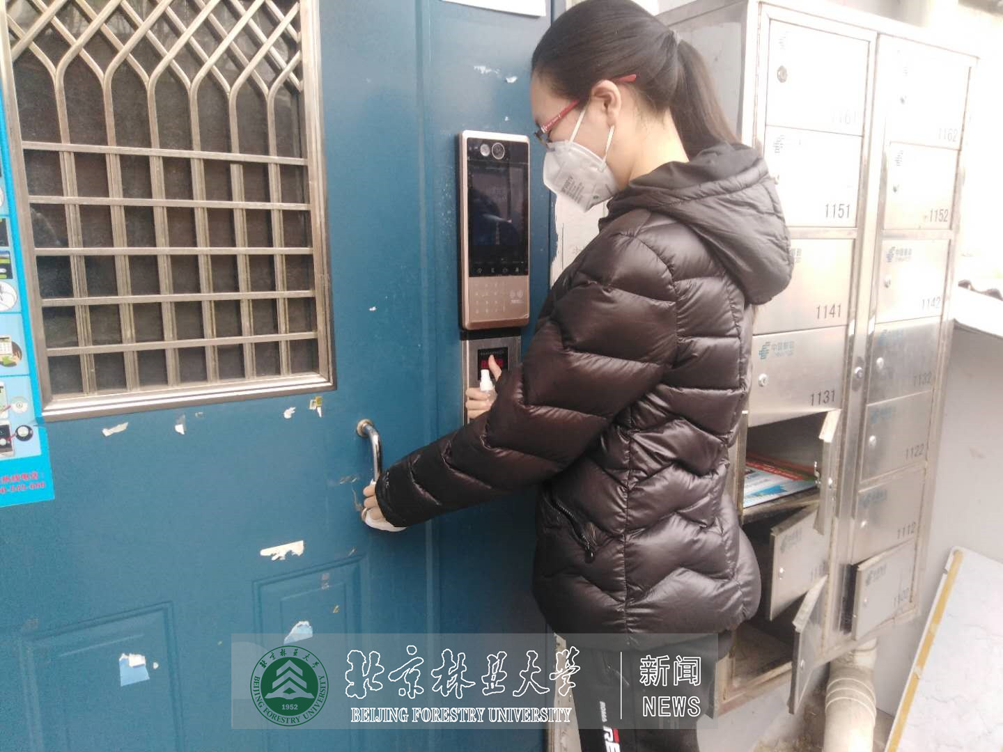 姜妍家在北京市西城区街道办事处大觉社区,她说:“疫情防控,人人都是战斗者,学生党员更应有所作为,我们虽然不能像医护人员一样战斗在疫情前线,但也可以自觉做一些小事,引领身边的人科学抗疫。”进入2月,触目惊心的疫情数据时刻触动着她的心,她觉得行动迫在眉睫,于是她主动拿出家中的75%乙醇为楼层的门把手消毒,希望能尽量减小周围人受到感染的可能性。每个人做一点小事,我们必将夺取疫情防控的主动权!
