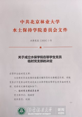 近日,水保学院党委结合疫情防控工作需要,召开党委会研究决定成立“水保学院在鄂学生党员临时党支部”(以下简称临时党支部),进一步发挥学生党员在疫情防控一线的榜样引领作用。