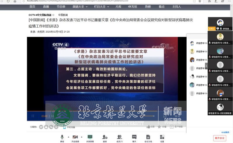 支部书记带领支部党员共同学习了《习近平在中央政治局常委会会议研究应对新型冠状病毒肺炎疫情工作时的讲话》和《习近平在北京时调研指导新型冠状病毒肺炎疫情防控工作时的重要讲话》,并深刻领悟习总书记重要讲话精神。支部书记强调要积极关注官方的具有权威性的媒体信息,不断加强对于疫情防控发展的认识,传递正向科学的防控知识,做到不造谣、不信谣、不传谣。