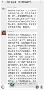 本次线上学习分享会在疫情关键时期开展,加深支部成员对于新型冠状病毒的了解同时促进了学习型党支部的建设,支部成员积极响应,在支部群内讨论热烈,会后支部成员将心得感想分享到朋友圈。支部党员表示这次疫情对广大党员来说是一次考验,在疫情防控面前,我们更应当坚定不移,做到模范带头作用,不出门,不信谣,不传谣,规律作息,提升自我,积极配合学院和学校工作。