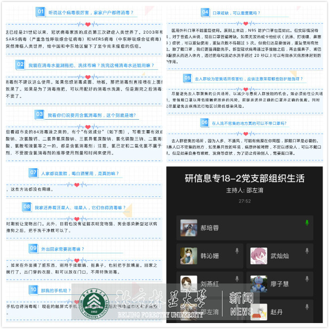 近日,研信息专18-2党支部召开线上组织生活会,学习防疫知识,讨论疫情防护方法措施和一些防疫“误区”。