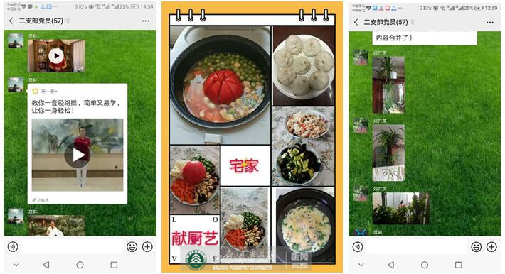 2月25日,活动第2天,主题为“动起来”,活动主要展示疫情期间,大家在家中不停歇,锻练身体,展示厨艺,进行家庭养植等。大家在群内通过照片、视频、文字等形式交流。本日参与主题交流的党员为38人次。其中,方国良、陈天全、常骏三位宅男的厨艺非常了得,廉美珍老师的特色朗诵声情并貌、拼图别具一格,张清泉、刘开英、胡建、张玉莲的花卉养护值得称赞,田海平的自制对帘精美亮眼,辛昌林、李明珠、黄中莉、张月桂等几位老师推送的健身炒招和美食制作非常值得推广。