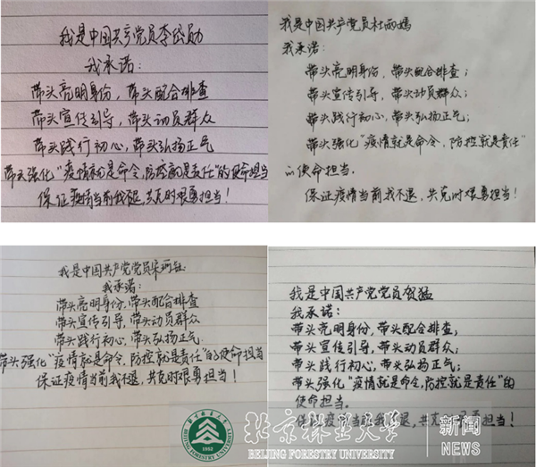 资环专业本科生党支部发布了支部党员承诺书,要求全体党员面对疫情,彰显党性,郑重承诺。支部的学生党员纷纷在纸本上认真抄写了承诺书全文,字迹力透纸背,彰显出大家共克时艰的决心。