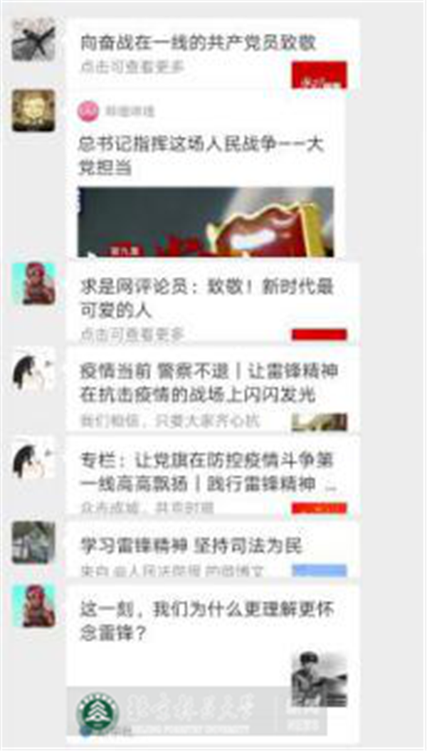 近日,风景园林3、4班学生党支部开展了雷锋月线上学习讨论会,此次会议的主题是“结合抗疫实情,分析理解雷锋精神新时代内涵”。支部同学结合学习材料和自身实践经历探讨了对雷锋精神的理解、对党的领导和党员责任的认识以及雷锋精神的新时代内涵。