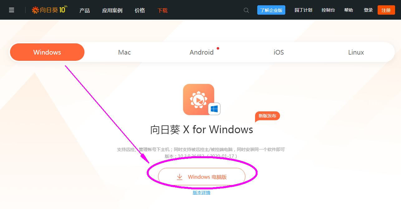 第一步:下载适合自己电脑操作系统的向日葵软件,并且在家庭电脑和办公电脑上均安装该软件。