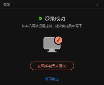 在登录成功后,建议绑定(设置无人值守),今后只要这台电脑开机并联网,您就可以通过输入安全的访问密码来远程操控。