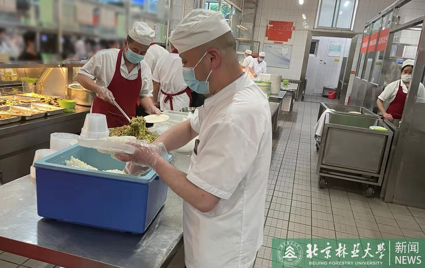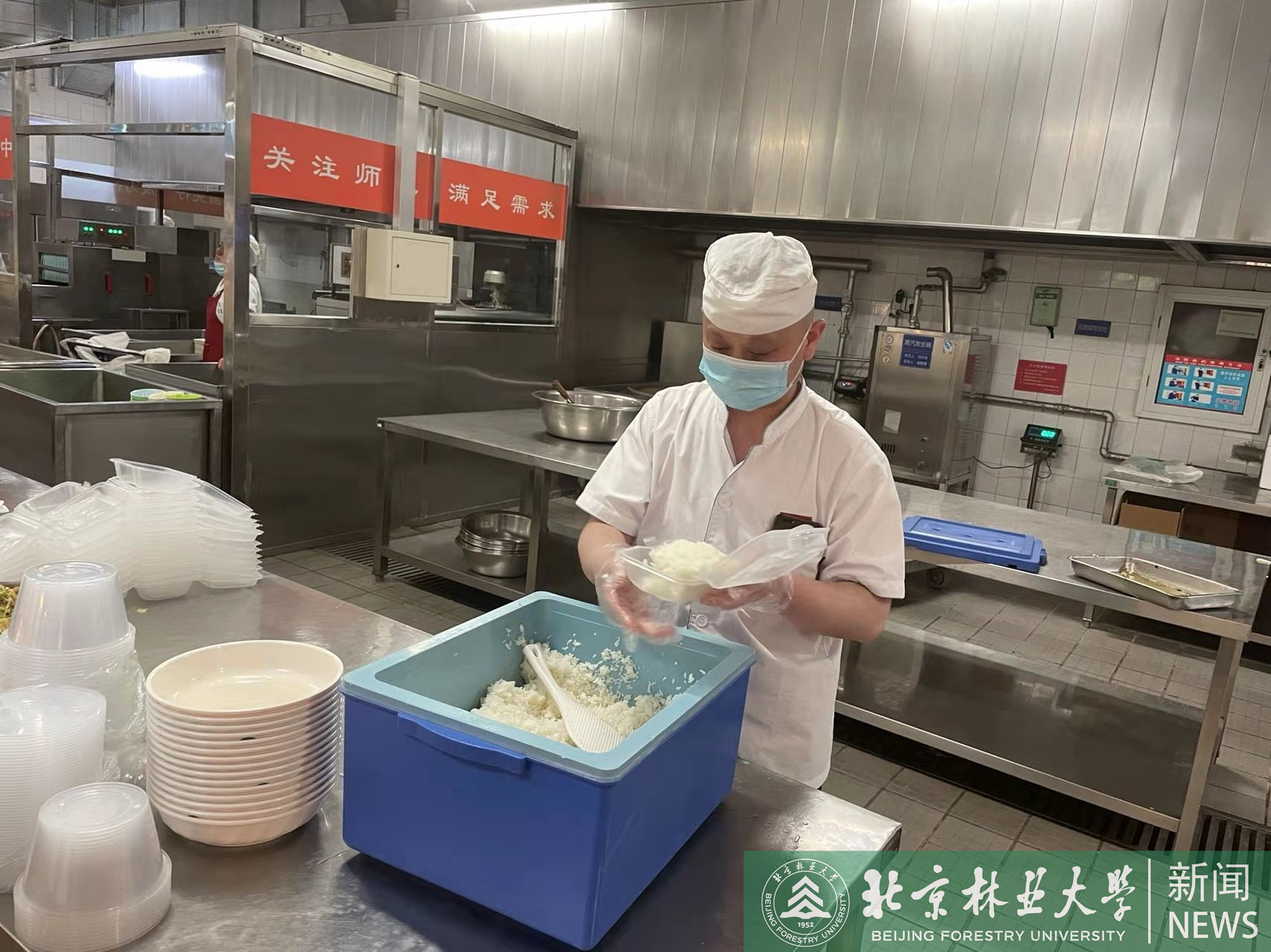 学二食堂副经理吴斌已在北林工作二十余年,2022年春节期间,他主动申请到开伙食堂加班,坚守岗位,以食堂为家。面对当前的疫情形势,他与食堂工作人员一同坚守在防疫保“胃”战的最前线,从早到晚、一日三餐,齐心协力,全力以赴,只为师生吃上安全可口的饭菜。疫情期间,在保证饭菜正常供应的同时,还要时刻关注用餐卫生、消毒防疫,他要求食堂工作人员严格测量体温、时刻做好消毒工作。“护‘胃’使者们”虽然不善言谈,却一直兢兢业业、默默坚守,为师生供应一日三餐,用微薄之力守护着无“疫”后勤、无“疫”校园。