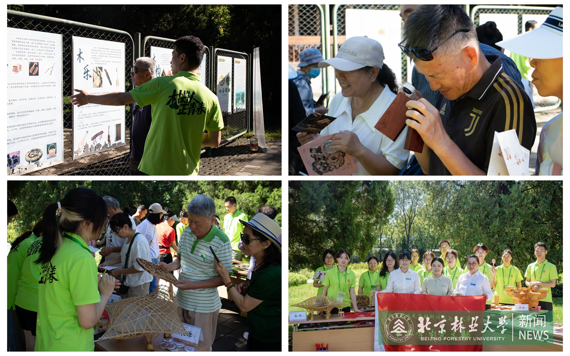“木韵匠心”快闪传趣,带动景区游客成为木文化与木艺魅力“发现者”。支部将科普阵地延伸至天坛公园科普园,设置“识木・生态、木构・低碳、木器・环保、木乐・自然”等特色互动展区,以实物触摸、技艺体验、视听感受搭建沉浸式平台;同步开展木刻版画拓印、非遗竹编制作、木琴演奏等体验项目,累计吸引1200余名游客参与,其中含外籍游客30余人次,超九成参与者表示不仅爱上传统木艺,更加深了对“木与生态共生”的认知,既达成“以展促学、以趣传文”实效,更助力传统木文化跨文化交流。