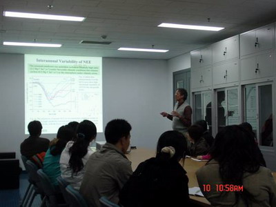 报告吸引了众多对此感兴趣的老师和研究生,通过David Turner博士的阐述,大家对目前区域尺度碳通量测算、生态系统过程模型的研究进展有了一定的了解,并就相关理论和方法问题与David Turner博士进行了探讨。