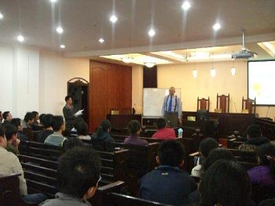 全场教授都是用英文做讲,但是同学们都有备而来,即使教授讲到一些比较难的问题,大家都会以鼓掌、点头、做笔记的方式来表示他们能够理解,并且都在积极思考。教授就环境刑法的问题一共讲了7个方面,结尾时还就法学学习谈了他自己的一些想法。教授所讲解的内容非常具有创新性,同学们听后大受启发。最后教授还特意留出时间让同学们提问,大家也是非常踊跃,纷纷表达自己的想法,与教授进行沟通交流。(A11)