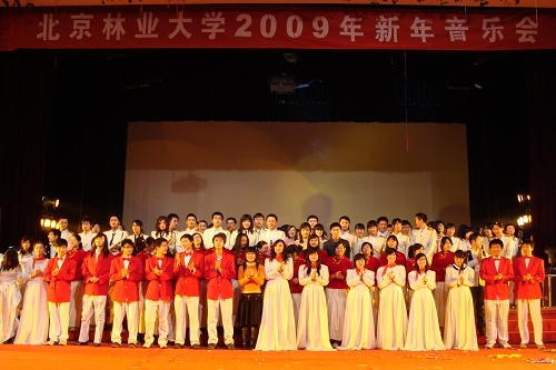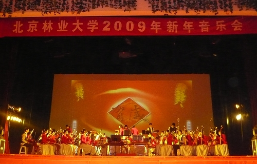 12月30日,由我校团委主办、校学生艺术团承办的北京林业大学2009年新年音乐会在田家炳体育馆精彩上演,本次新年音乐会是我校首次尝试将民乐团、合唱团、军乐团专场演出合为一体。本次音乐会共分为“和乐礼赞”、“天籁共鸣”、“和谐颂歌”三个篇章,全面展示了民乐的轻快活泼、合唱的婉转悠扬、军乐的高亢激昂。现场气氛热烈,精彩的演出送上了团学组织新年的祝福,也令欣赏音乐会的同学们耳目一新。晚会在《拉德斯基进行曲》中落下帷幕。