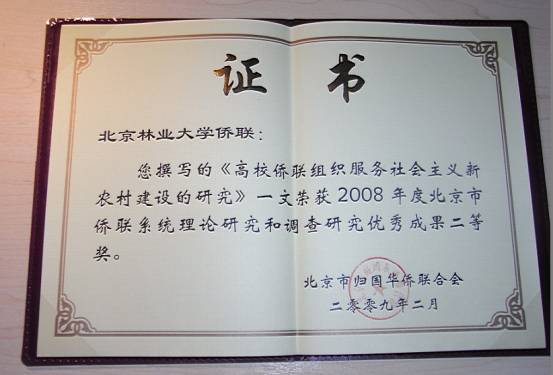 会议对2008年北京市侨联系统理论研究和调查研究工作作了总结,并表彰了理论和调研工作优秀组织和成果。我校侨联撰写的《高校侨联组织服务社会主义新农村建设的研究》荣获2008年度北京市侨联系统理论研究和调查研究优秀成果二等奖。