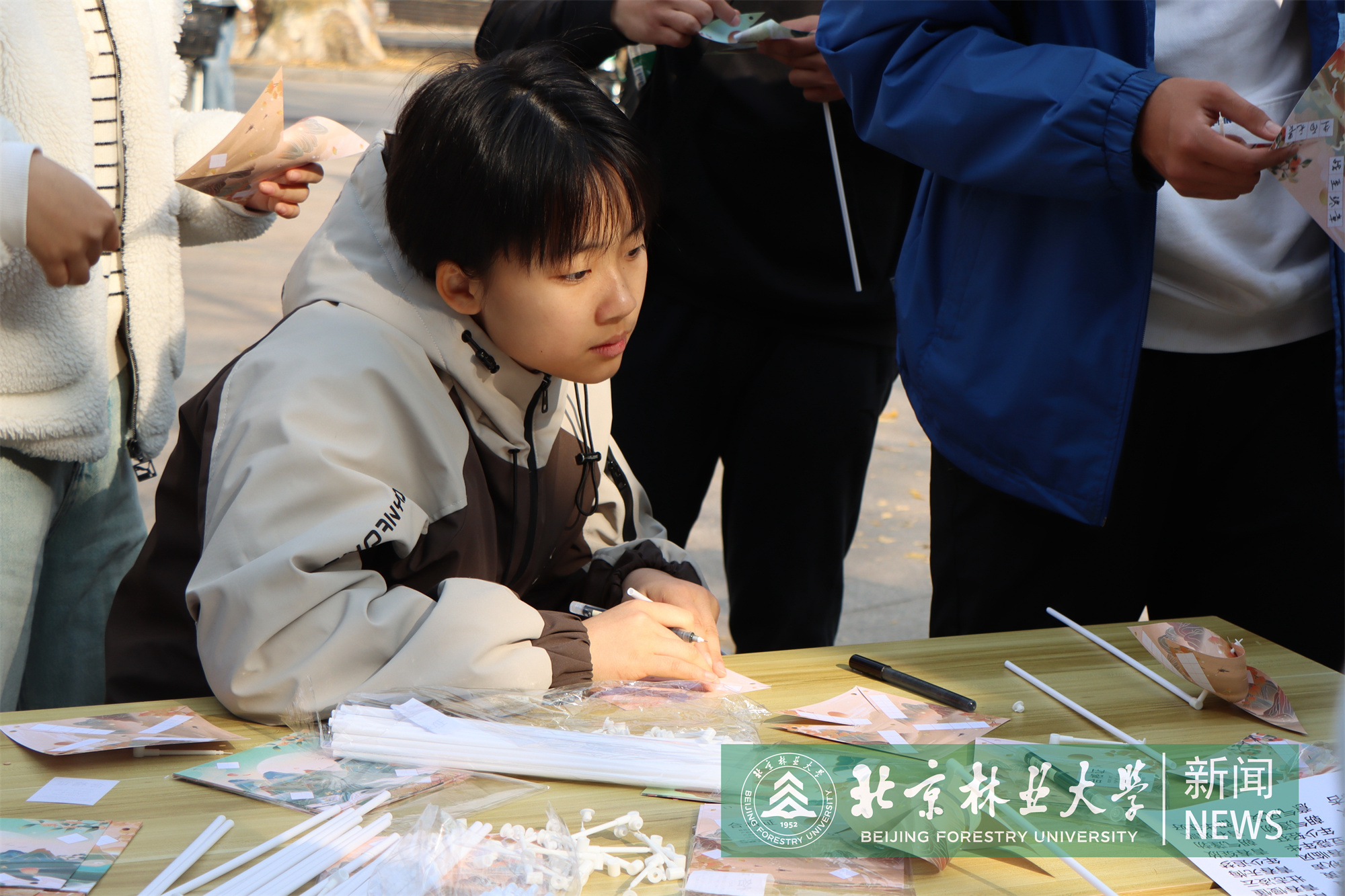 本次活动旨在以校园秋日美景为依托,围绕银杏这一具有北林文化特色的意象,通过沉浸式、互动性的文化体验活动,引导师生探寻北林秋意,发现自然之美,同时提升自身审美素养、陶冶自身思想情操。文化节包含了一系列体验环节,参与活动的师生可以利用银杏落叶制作书法小风车,感受书法艺术与银杏元素的融合之美,将个人的审美体会转化为独一无二的文创作品。此外,可以在银杏大道拍照打卡,定格秋季校园内的限定银杏美景,并在规定时间内完成银杏主题拼图,将零散的拼图碎片复原为完整校园秋景,加深了参与师生个人情感与校园文化之间的联结。