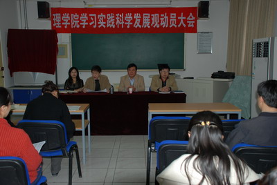 根据校党委部署,26日上午,理学院召开了学习实践科学发展观活动动员大会,副校长陈天全、学院党委委员、各党支部书记以及全体师生党员出席了会议。