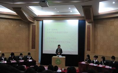 决赛就“女性就业是否需要受到保护”展开激烈的辩论。作为比赛正方的园林学院和作为反方的外语学院八位辩手就这一辩题,巧引辩例,旁征博引,引起现场掌声阵阵。他们机智的应变,生动活泼的语言向现场观众展示了当代大学生自信睿智的风范和鲜明积极的社会责任感。