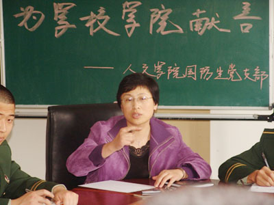 4月9日,人文学院国防生党支部开展“为学校学院献言”,人文学院党委书记出席指导支部开展学习实践活动。