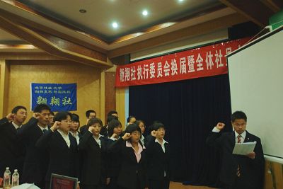 4月11日晚七点,我校翱翔支农与实践社在东配楼小报告厅隆重举行了第四届执行委员会换届暨全体社员大会,会上公布了社团新一届的执行委员会职位安排,曾晓珊和王英英分别任翱翔社第四届社长和团支书,全体成员郑重宣誓,下决心全心全意为三农事业贡献力量,为使社团发展更好而奋斗。