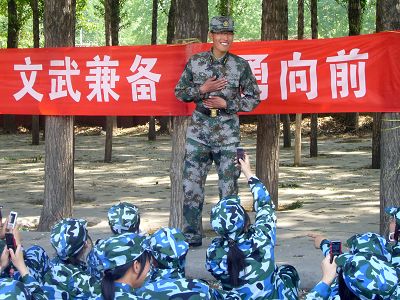 这群年龄和学生相差不多的教官们大多都很腼腆,盛情难却站出来唱歌时,总是露出羞涩,而可爱的学生们这时总是会给予他们最热烈真诚的掌声,很多人还会伴着教官的歌声哼唱,以另一种方式鼓励教官们继续唱下去。学生们也会掏出自己的手机,将这一快乐瞬间拍下来。