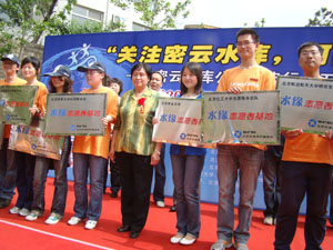 另外,在“水缘青年山水行”项目启动仪式上,水源保护基金会为我校颁发了“水缘志愿者基地”牌匾,与其它首都高校学子一起履行保护水源、节约用水的承诺。校研会主席林龙圳代表所有水缘志愿者宣读了《2009水缘志愿者宣言》。