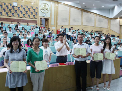 在结业仪式上,外语学院代表优秀组织奖学院,材料科学与技术学院的艺设07-1班、水土保持学院的环规07班、林学院林学08-2班分别代表特色活动奖班进行了经验分享,展示此次培训活动的班级成果和收获。