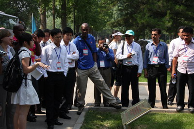 6月26日,参加商务部森林培育与经营管理官员研修班各国林业官员来到北京林业大学,兴致勃勃地对校园进行参观。林学院院长骆有庆教授和相关师生陪同参观。