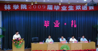会上林学院党委书记介绍了学院09年为推进就业所做出的努力,鼓励广大毕业生在自己的岗位上努力钻研,脚踏实地,为祖国的各项建设事业做出自己的贡献。学院院长在致毕业生的欢送词中,深情回顾了09届毕业生4年来和学院共同经历的本科教学评估、“十五”“211工程”的验收、党建与思想政治水平评估等重大事件,一起见证了从资源与环境学院到林学院的回归,强调了他们为学院发展所做出的贡献,希望大家走出校园能成为林学院流动的名片。随后,与会领导为优秀毕业生颁发了证书,优秀毕业生代表也向母校表达了谢意,表示定将用实际行动回报母校和社会的培养。