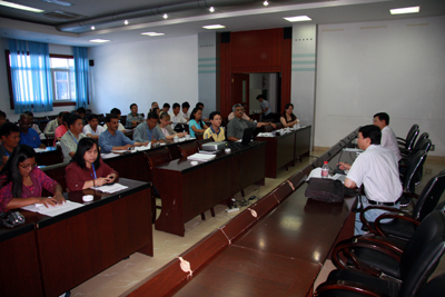 7月7日上午,三明市林业局局长王洪毅向研修班学员详细介绍了三明市林业发展基本情况,并作专题报告,下午又在三明市林业局召开座谈会,同各国学员广泛交流了林业建设方面的经验,并就个别问题进行了深入讨论。当晚,三明市副市长洪明德,三明市林业局局长王洪毅及当地有关领导在研修班下榻的宾馆举行欢迎晚宴,我校副校长张启翔出席晚宴并发表讲话