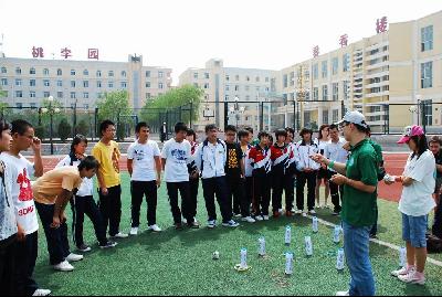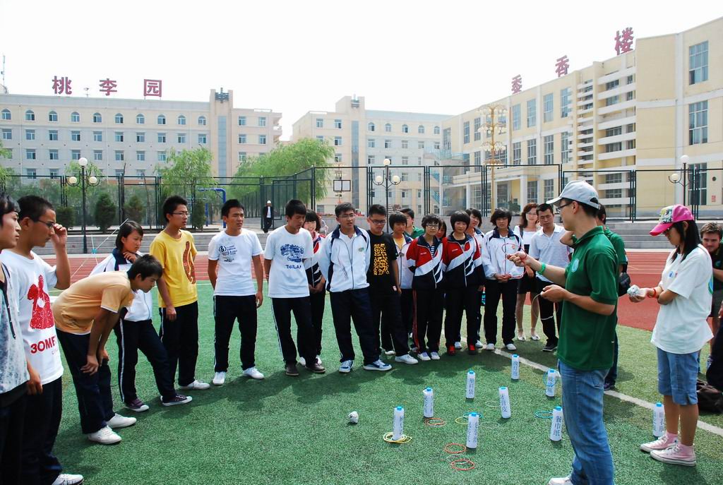 讲座结束后,志愿者们和中学生来到体育场开始了一系列形式新颖、寓教于乐的互动环节。志愿者们将有关垃圾分类、可再生能源的环保知识巧妙地与游戏相结合,既吸引了同学们的积极参与,活跃了现场气氛,又使环保的理念在潜移默化中深入人心。在整个环境教育过程中,来自中美两国的中学生,始终在其乐融融的氛围中,共同探讨如何应对全球气候变暖及环境恶化等问题,既增长了知识,又促进了友谊。