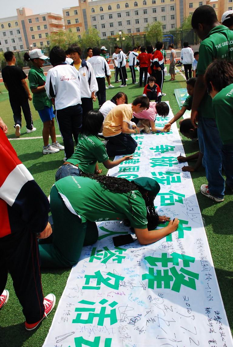 与此同时,志愿者们还在现场开展了环保承诺万人签名、节能减排成功案例征集、减少碳排放创意彩绘等活动。通过近三个小时的环境教育活动,志愿者向同学们广泛宣传了绿色长征的核心理念,活动得到了校方的高度肯定和同学们的热烈反响。许多同学纷纷表示,将在今后的生活中牢记节能减排,践行环保理念,从日常点滴做起,真正为环保事业贡献一份力量。