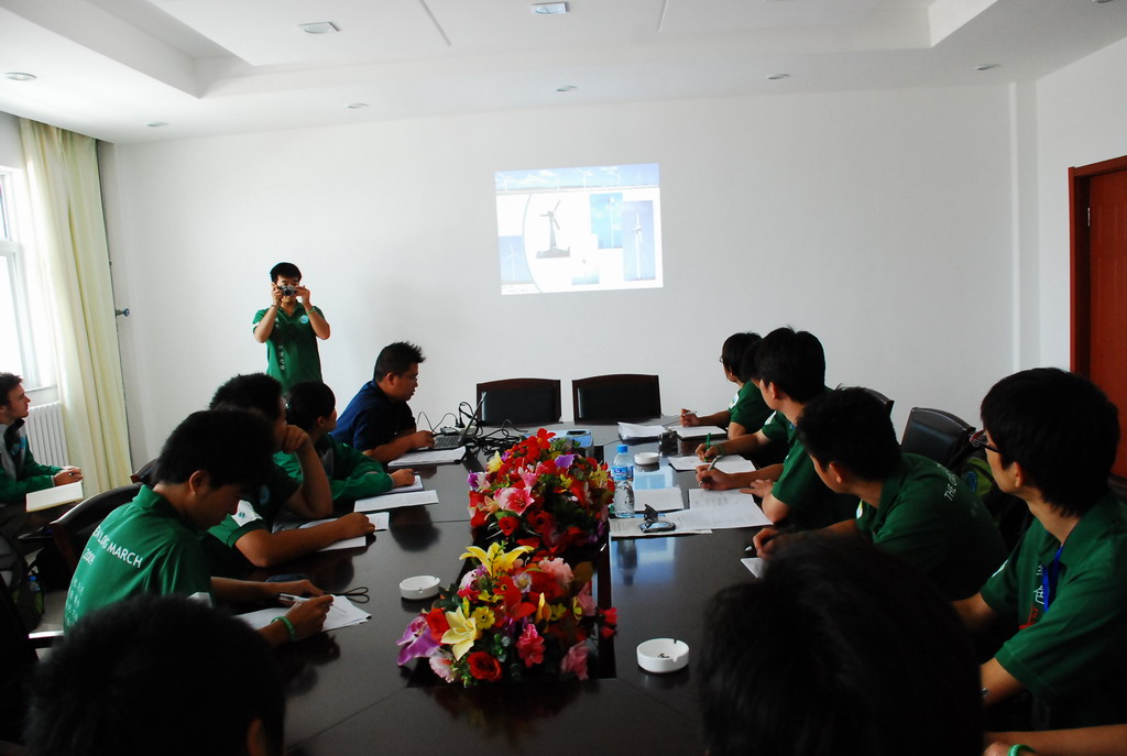 8月4日,草原漫步团奔赴乌兰察布市右中旗,进行了关于风能发电的案例调研。在风电场,苏司兰能源有限公司的工程师向绿色长征志愿者详细介绍了有关风力发电的原理、发展历程以及我国风力发电的未来趋势;随后,志愿者们与苏司兰的员工就风能利用、环境保护以及风电场周边草场生态恢复等问题进行了座谈调研,参观了风力发电机的内部构造及现场工作情况。