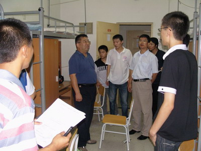 9月5日下午,经管学院全体院领导来到学生宿舍10号楼、11号楼,亲切看望2009级入学的新生同学,嘘寒问暖,与新生进行交流,送去了学院对广大同学的关爱之情。